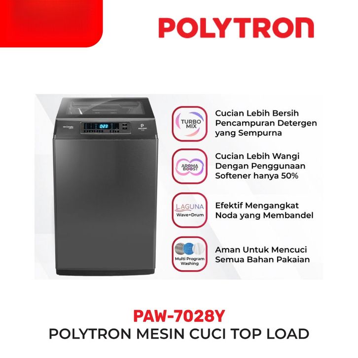 POLYTRON Mesin Cuci 1 Tabung 7kg PAW-7028 Zeromatic Laguna Series Hijab