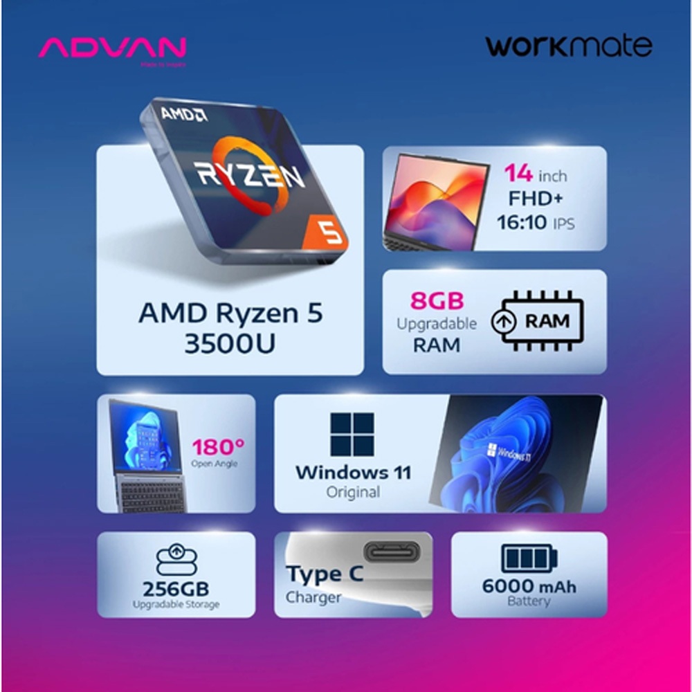 Advan Workmate Ryzen 5 3500U 8Gb 256Gb 14" Fhd+ Win11 - Garansi Resmi