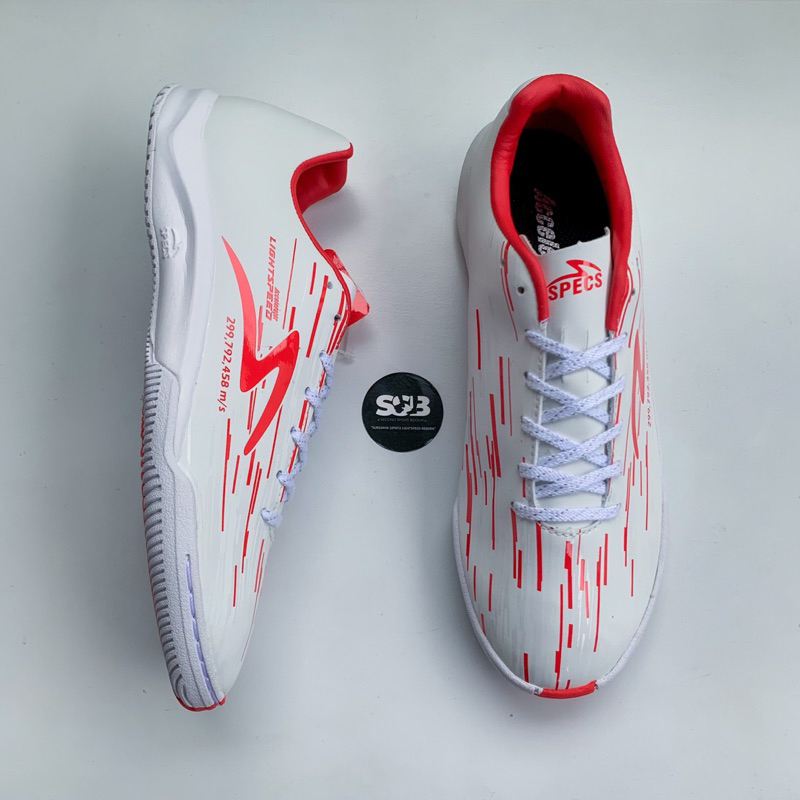 Sepatu Futsal & Bola Specs Lightspeed Reborn White / Magnifico White Pale - Emperor Red