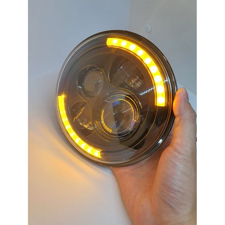 Lampu Depan 7 Inch M0DEel Bulat 4 Mata LED Headlamp Utama 7 inci Folampu Motor Mobil Harley Jeep Waterproof Universal