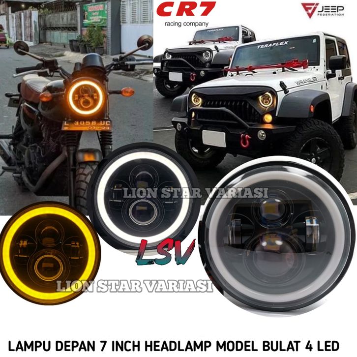 Lampu Depan 7 inch M0DEel Bulat Headlamp Utama 7 inch 4 Mata LED High Low Universal Motor Mobil Harley