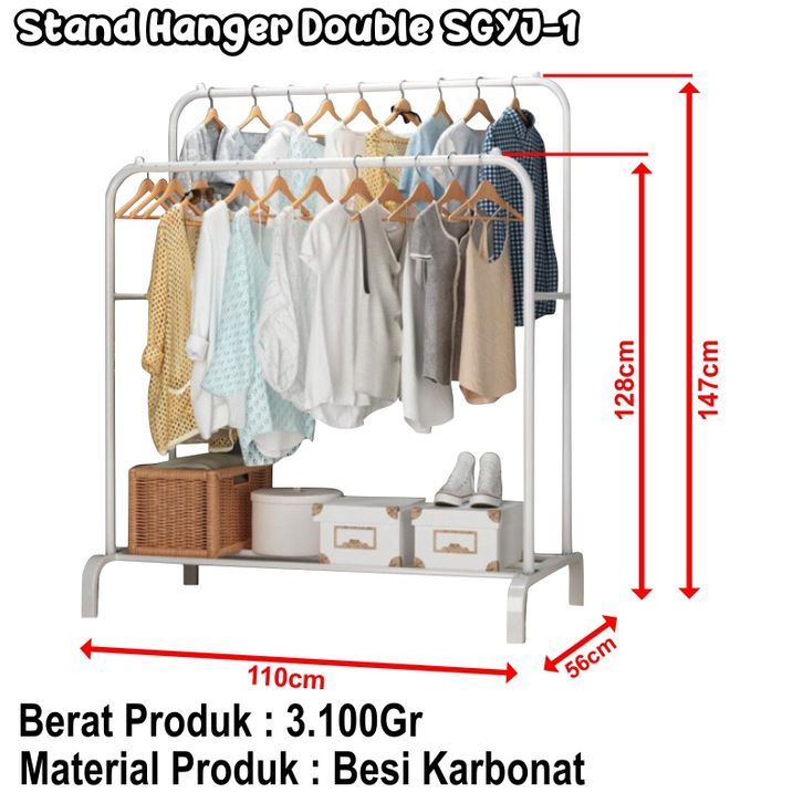 Gantungan Baju Stand Hanger Besi Kuat Putih Hitam Butik Display Gawangan Jemuran Multifungsi