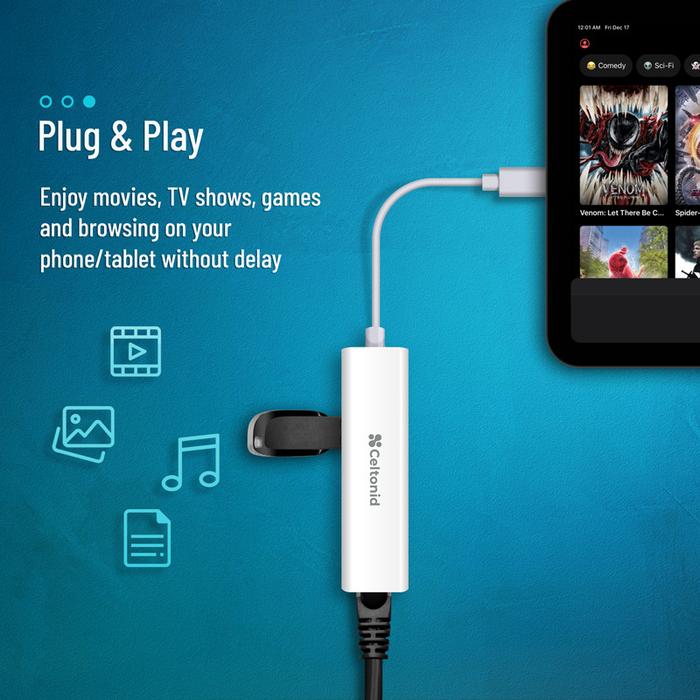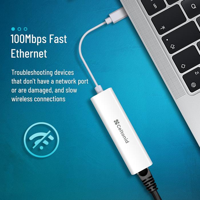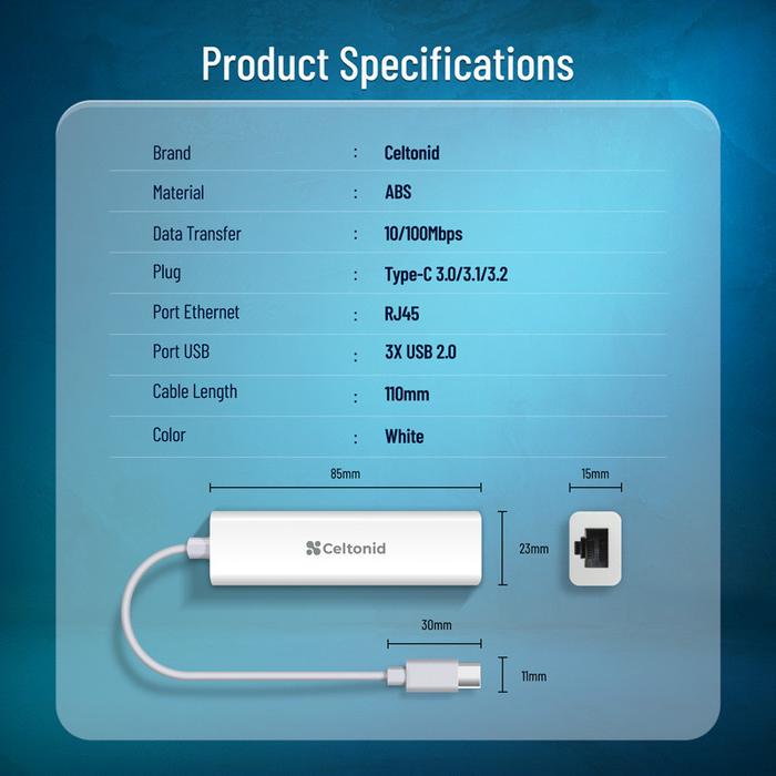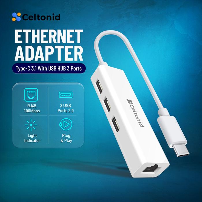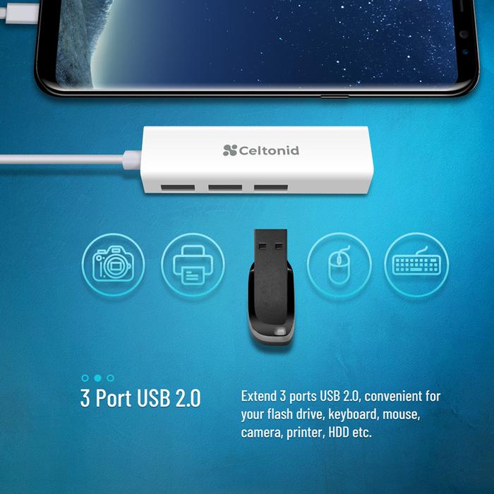 CELTONID OTG HUB Type C 3.1 USB A Type C Type-C 3 Port Lan Ethernet RJ45 Adapter Adaptor Charger - White