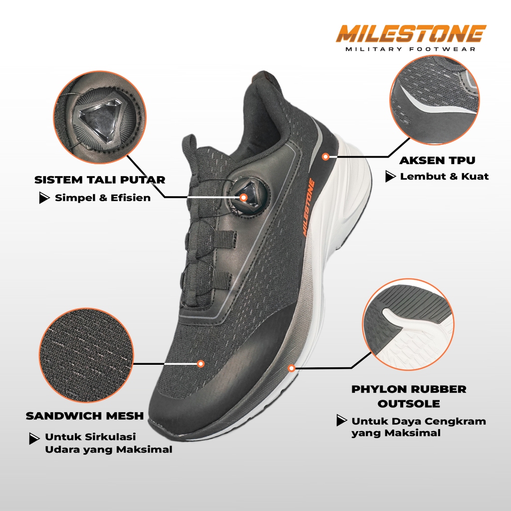 Sepatu Running Tali Putar Untuk Olahraga Lari Milestone Athena Spesifikasi Standart Jatah TNI POLRI dan KEMHAN Unisex