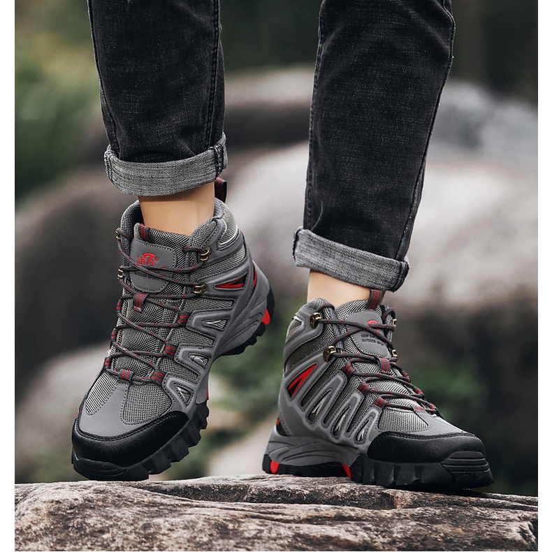 Sepatu Gunung SNTA 500 Grey Red - Gratis Kaos Kaki / Sepatu Hiking SNTA / Sepatu Outdoor SNTA
