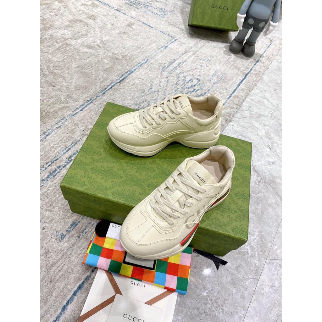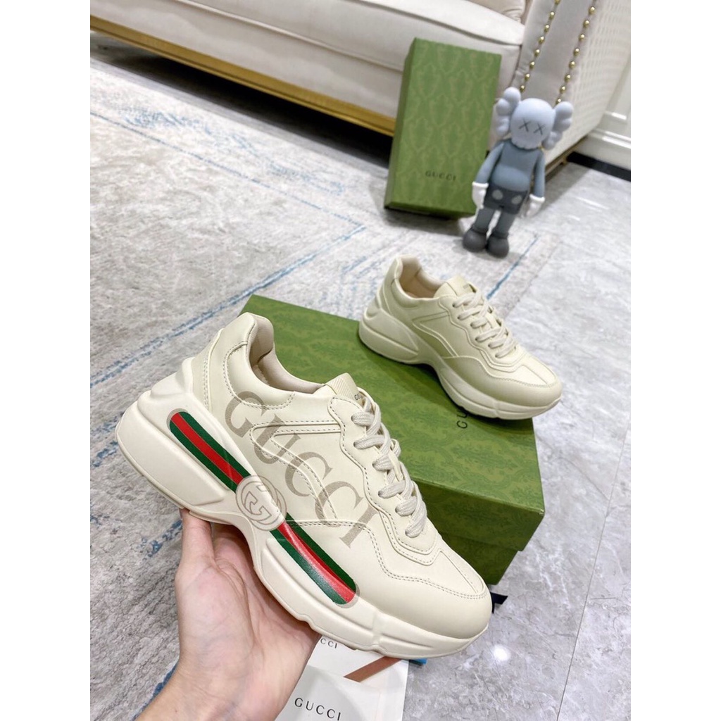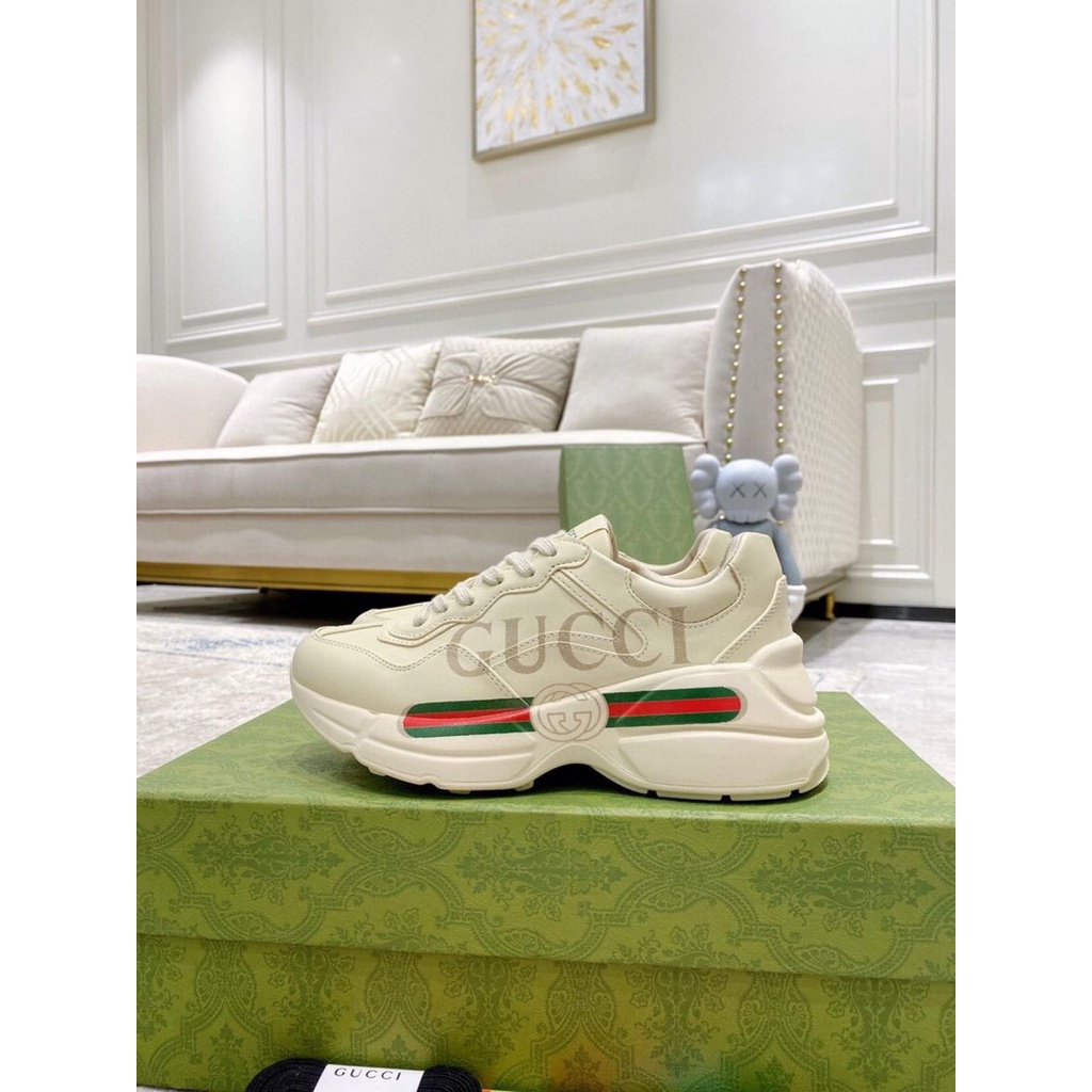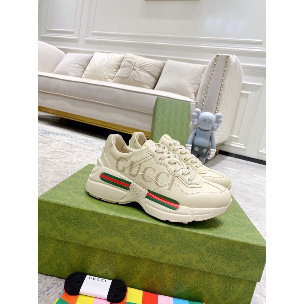 Original Gucci Logo Rhyton Retro Leather Sneaker/Sepatu Kets Kulit Retro Rhyton Logo Gucci Asli
