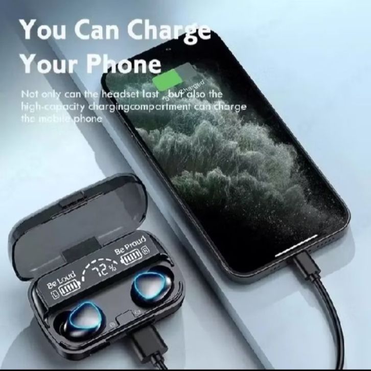 Headset Bluetooth Wireless TWS M10 Digital display bisa Powerbank