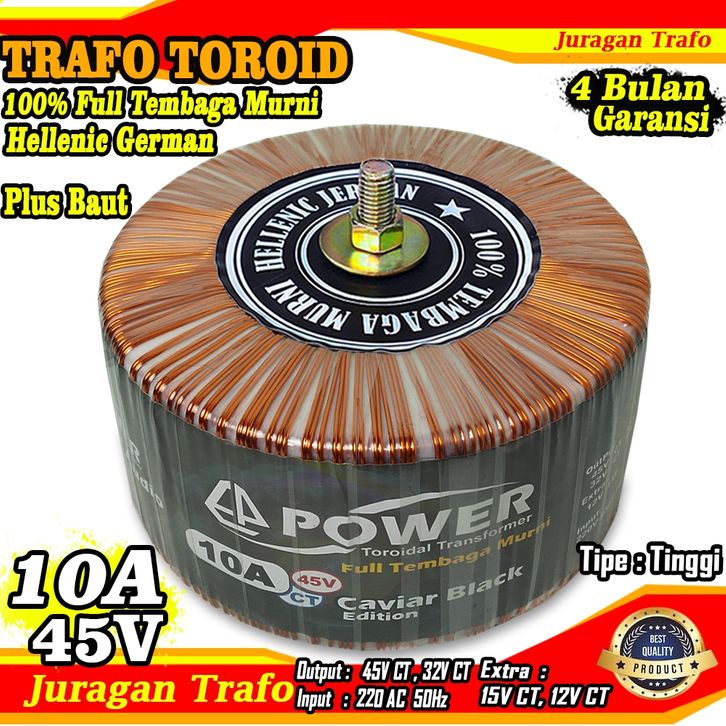 Trafo 10 ampere Trafo Toroid Power Original 10A (MURNI) 45V CT 32V CT Full MURNI Tembaga Hellenic German