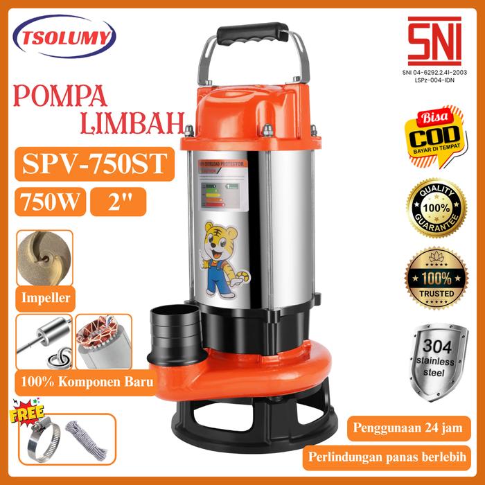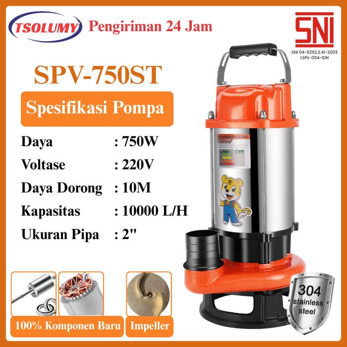 Tsolumy Pompa Celup Air Kotor SPV-750ST Submersible Pump Pompa Kolam Ikan Pompa Banjir Irigasi Sawah