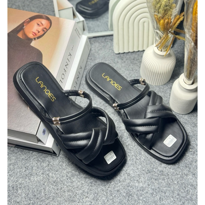 LANOES Sandal Platform Wanita Korean style Silang Tali Belakang Anti Slip Terbaru Kekinian 2025