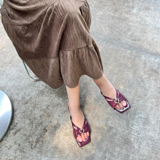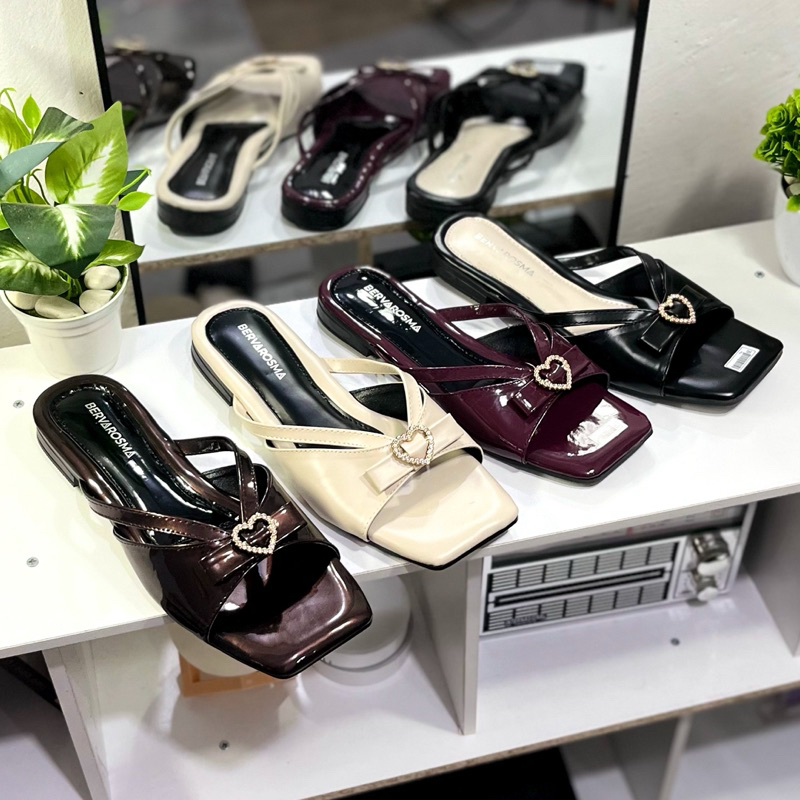 Sandal Wanita Teplek Premium Terbaru Sendal Perempuan Super Empuk Platform Burgundy Mahogani