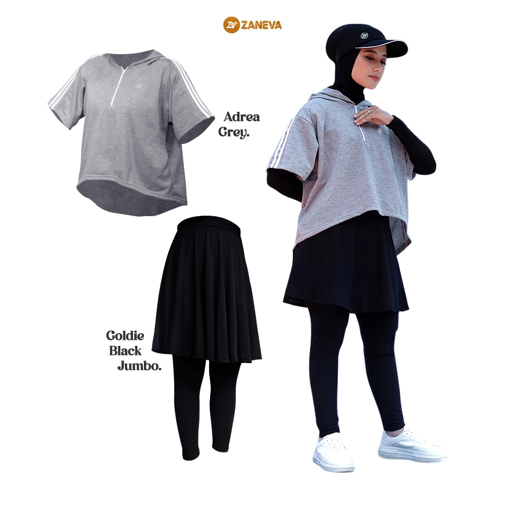 [BEST SELLER] Adrea Hoodie Sporty by Zaneva | Stelan Olahraga Muslimah | Bisa Atasan Saja