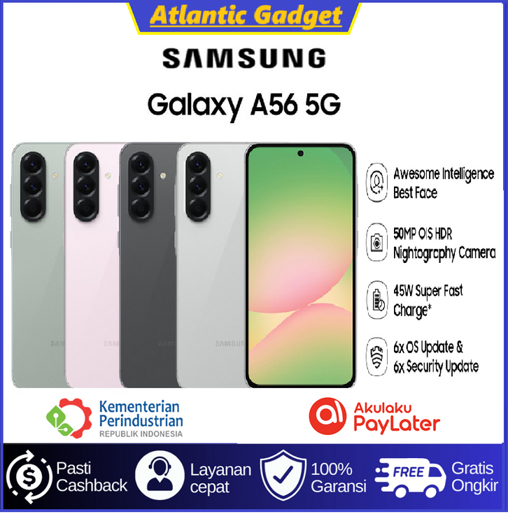 Samsung A56 5G 12/256GB Garansi Resmi | Jaminan Update OS 6x | Exynos 1580 | Layar 6.7" Super AMOLED | Kamera 50MP