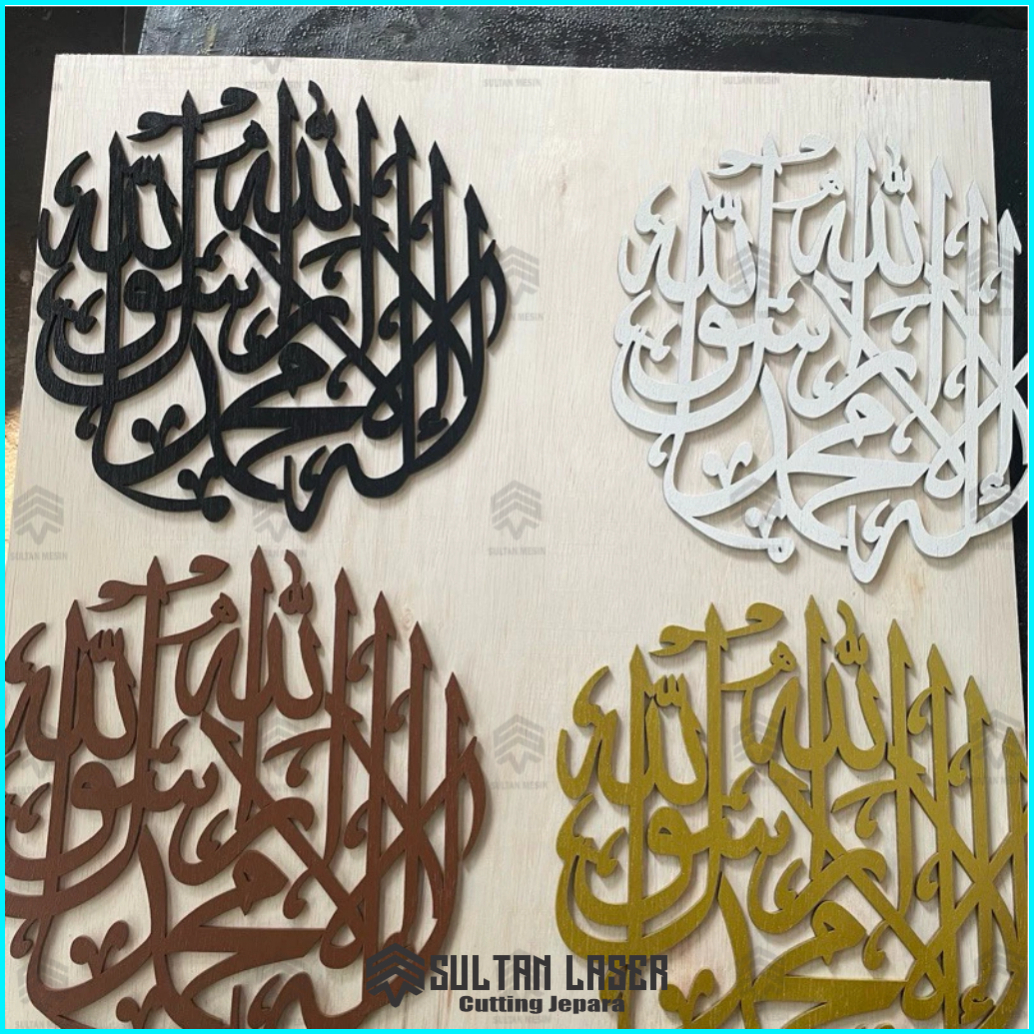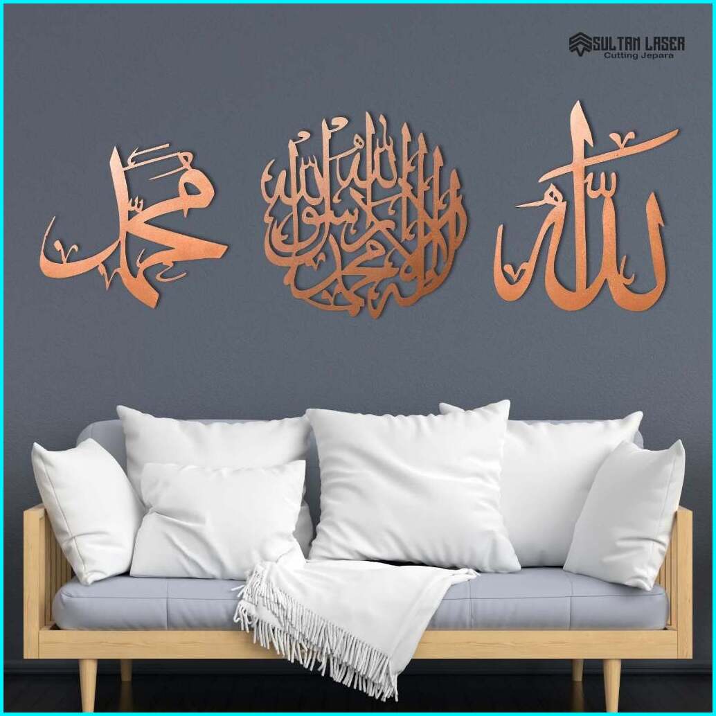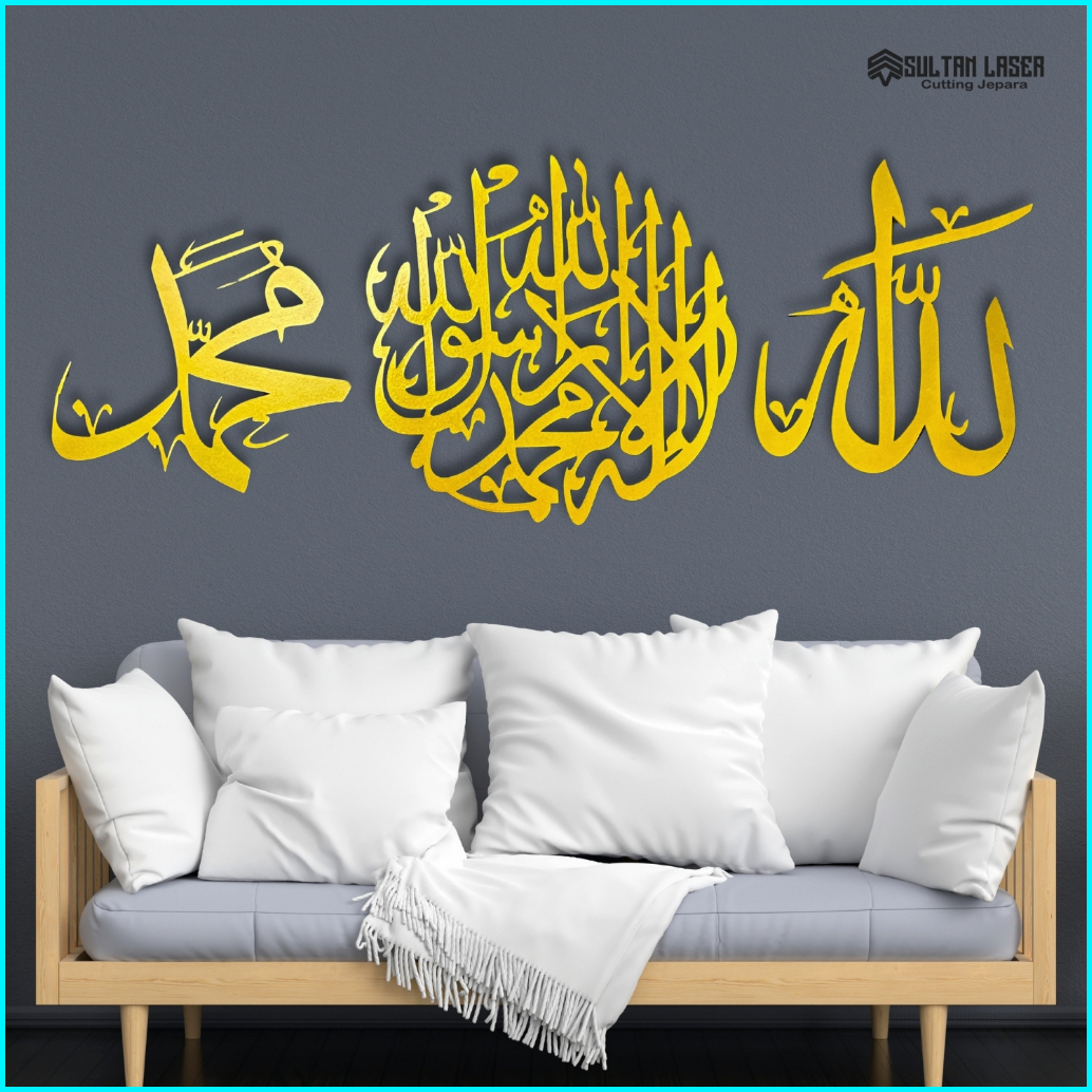 Sultanlaser - Hiasan Dinding Kaligrafi Mewah 1 Set 3 Pcs Lafadz Allah Muhammad Tauhid Dekorasi Dinding Walldecor Dekoras