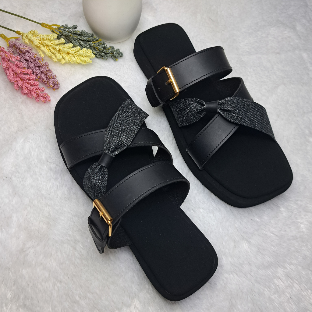 Sandal wanita platform motif rajut gesper empuk Korean style terbaru model trendy