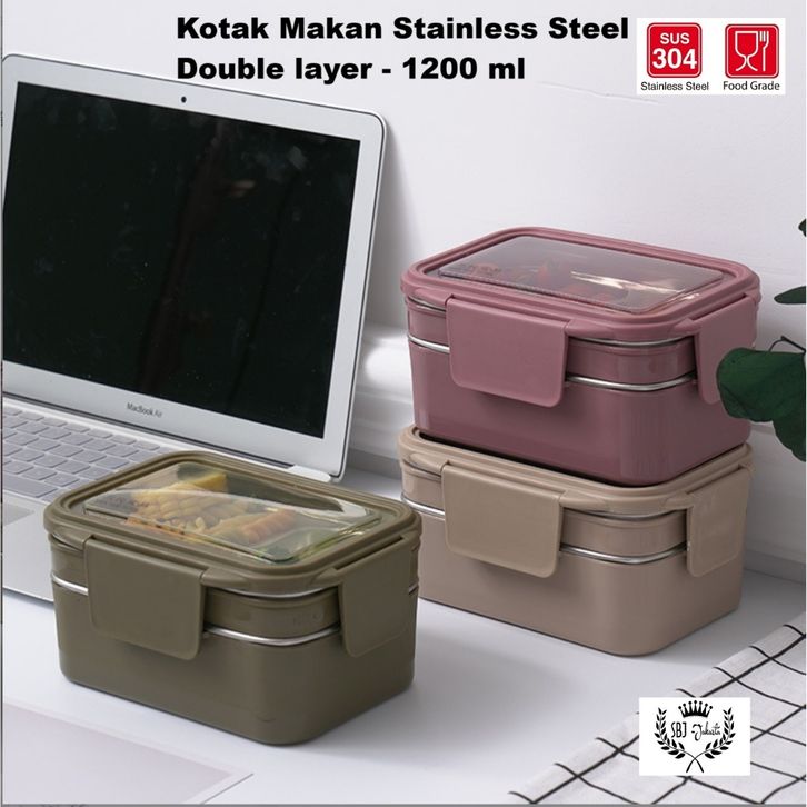 Kotak Makan Anak Anti Tumpah Stainless Steel Lunch Box Set Dewasa 2 Tingkat Kotak Bekal Makan Anak Sekolah Terlaris