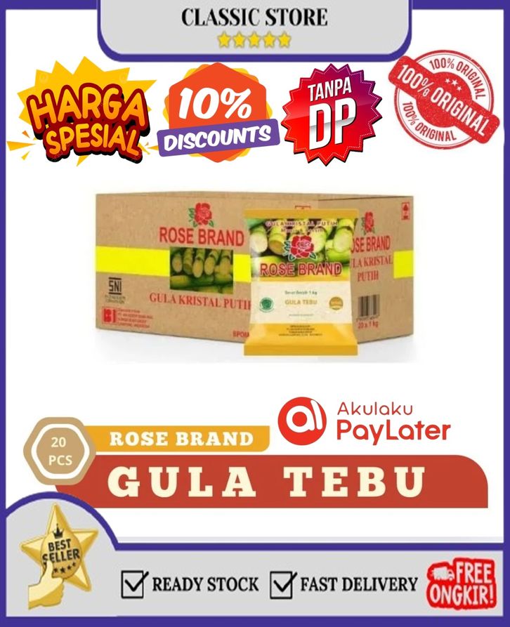 Gula Pasir Rose Brand 1 Karung isi 20 Bungkus 1kg - FREE ONGKIR