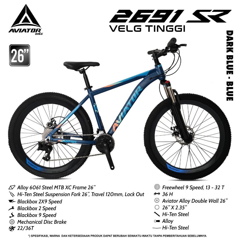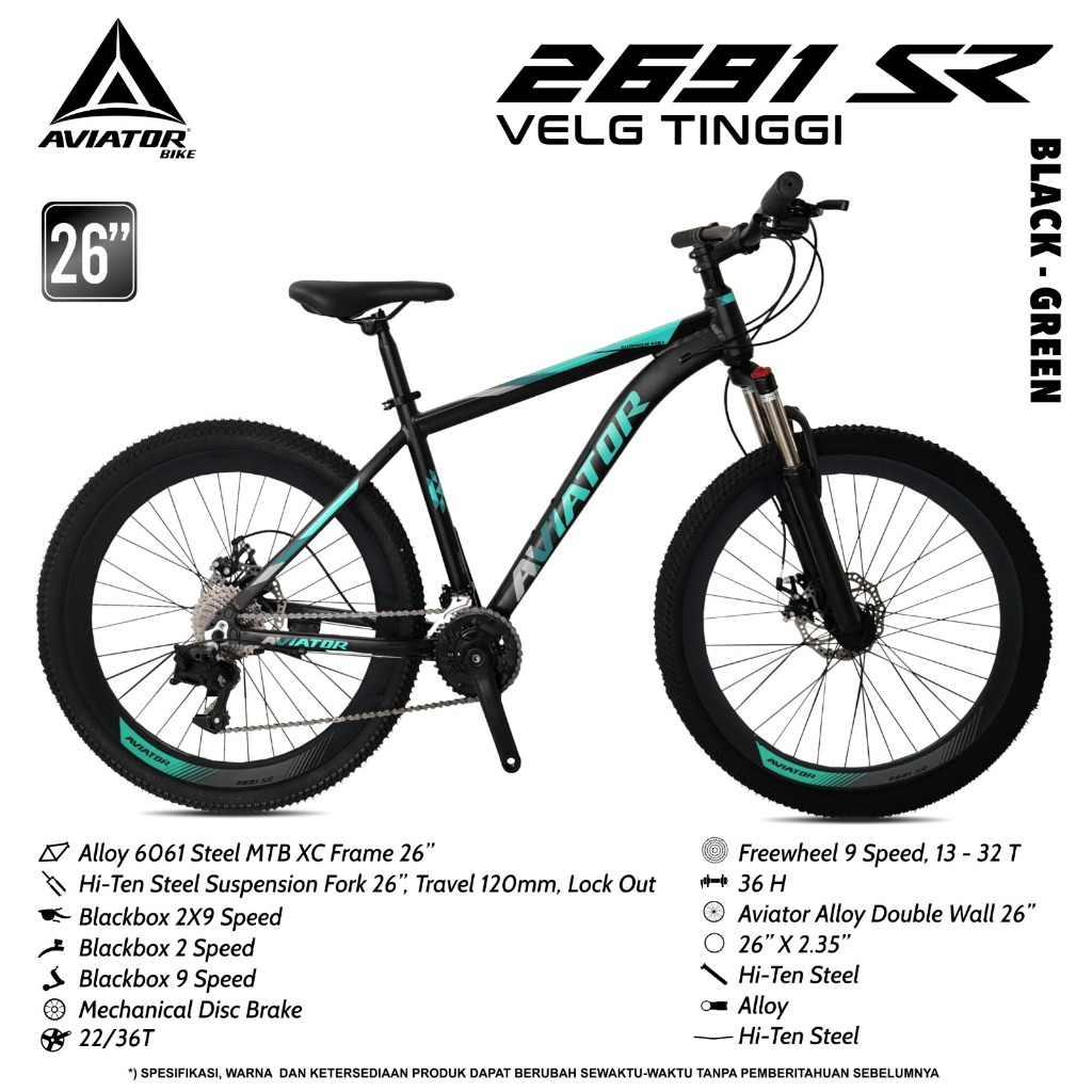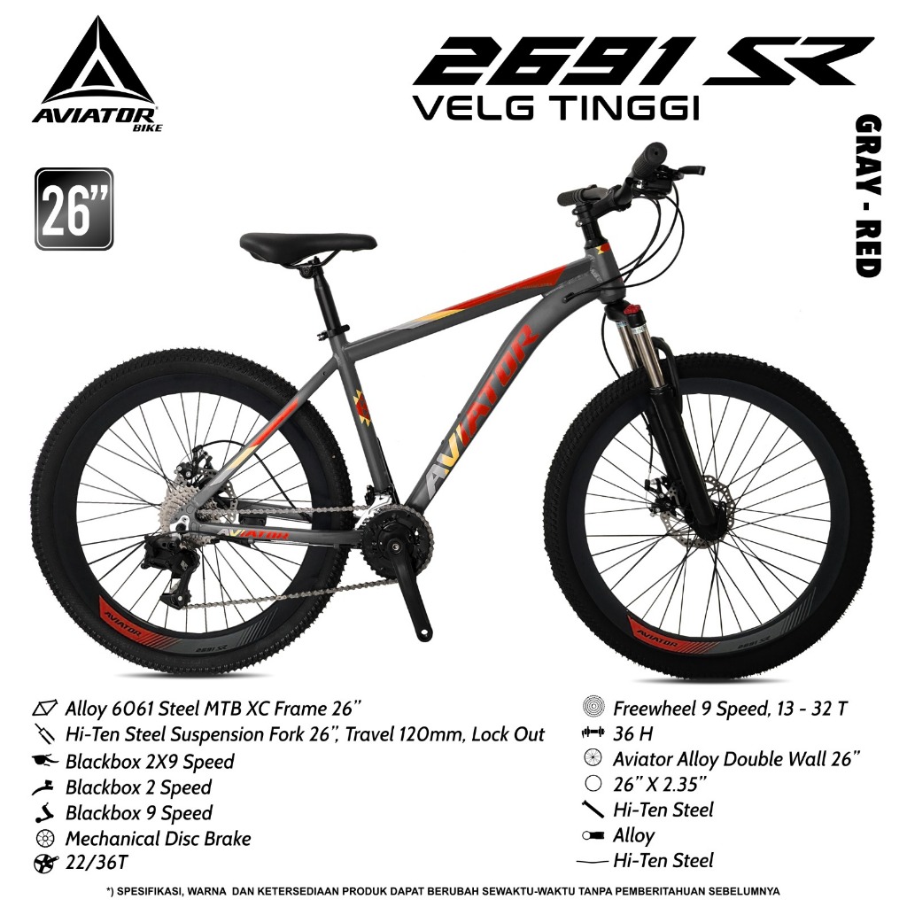 SEPEDA GUNUNG MTB 26 AVIATOR MTB 2691 SR VT (2X9) (VELG TINGGI)
