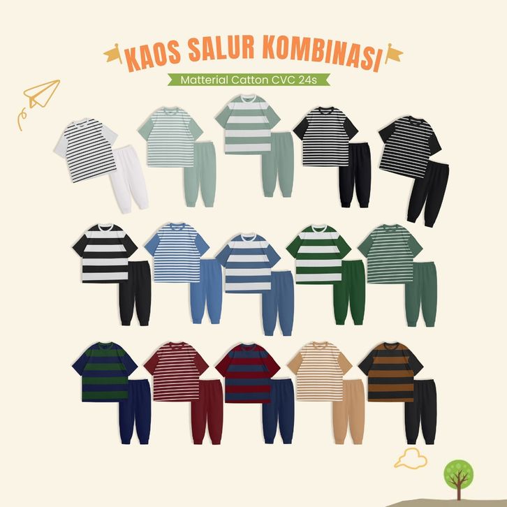 Setelan Piyama Anak Usia 1-10 Tahun Laki-laki Perempuan / 1 Set Baju Tidur Motif Salur Kombinasi Strip