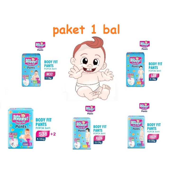 (PROMO 1 BAL) Baby Happy Pants S38+2 / M32 / L28 / XL26 / XXL24