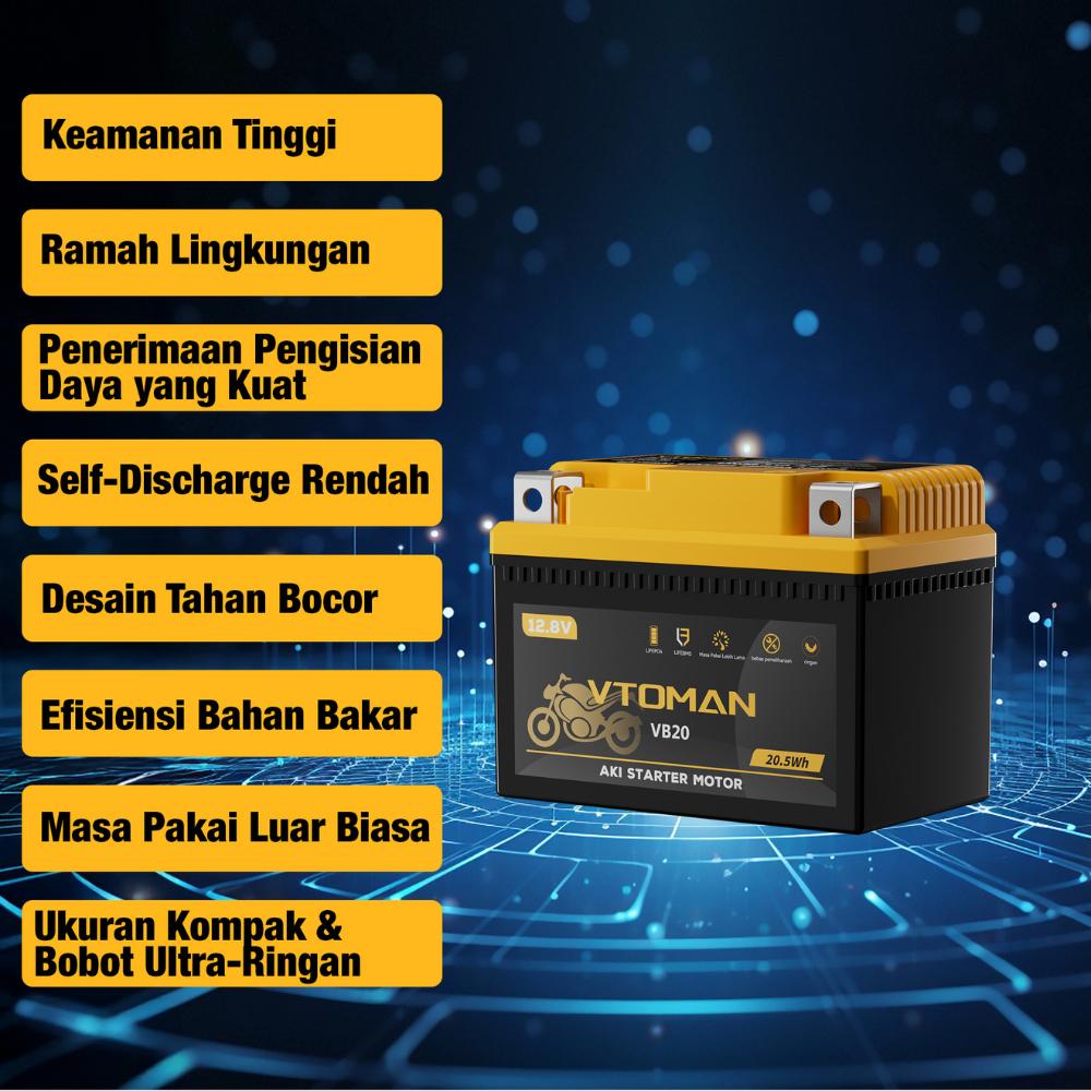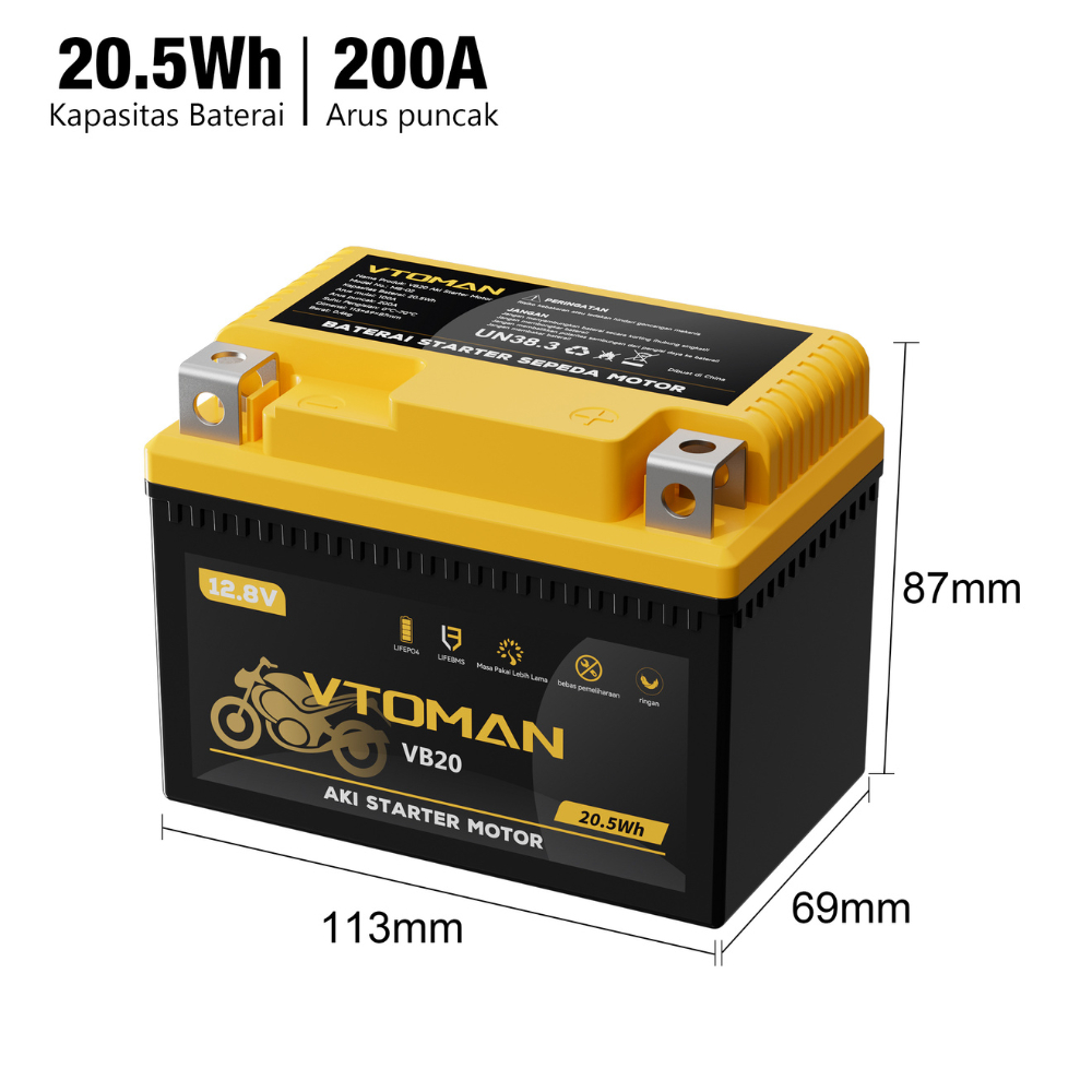 VTOMAN VB20 Aki Motor 12V Baterai Starter Motor 125cc-150cc | Baterai Kering | Motor Matic & Bebek | Ringan