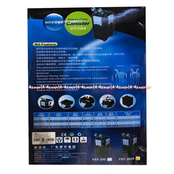 Boyu External Filter Canister FEF-280A Penyaring Luar Untuk Akuarium M0DEel Eksternal Aquarium Kanister Boyyu