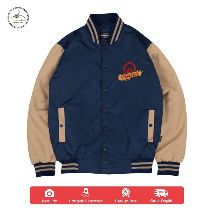 Jaket Varsity Pria Original Dobujack Born To Ride Navy Material Parachute Royal Nill Ink High Quality