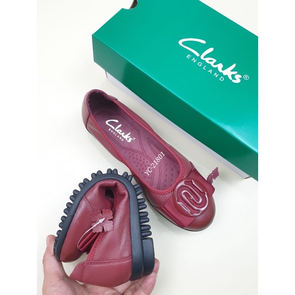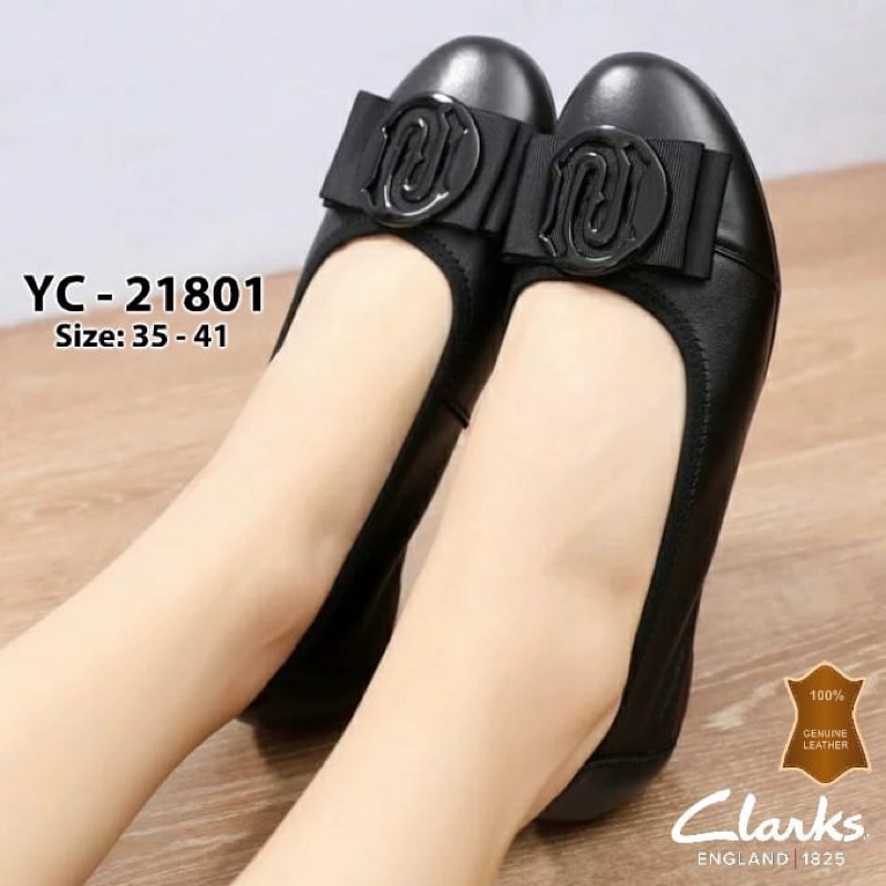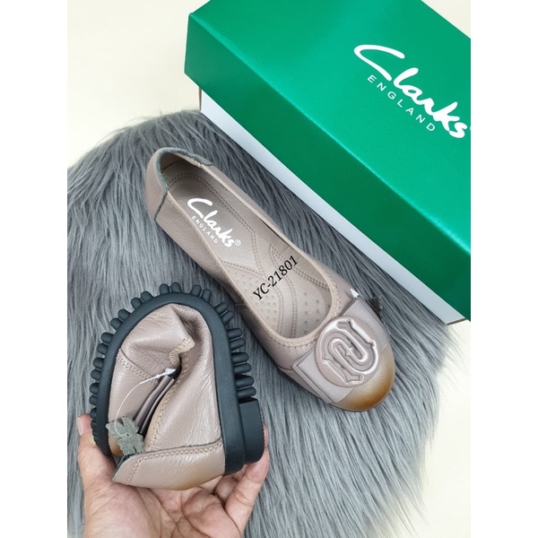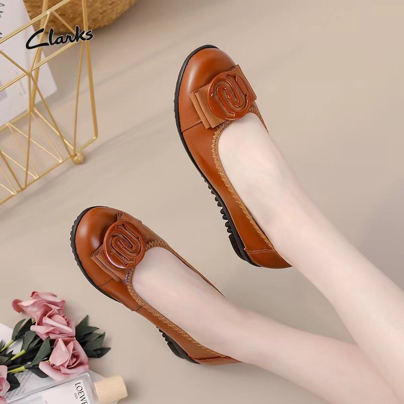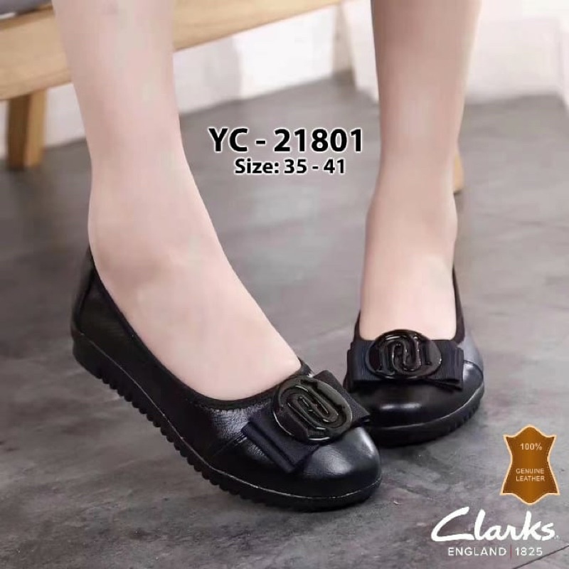 Clarks YC-21801 Logo Flat Leather Shoes Kulit Asli