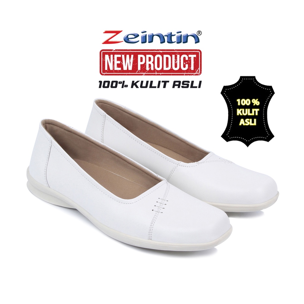 Zeintin - Sepatu Wanita Kulit Putih Pantofel Wanita Sepatu Formal Wanita Sepatu Perawat Wanita BJ