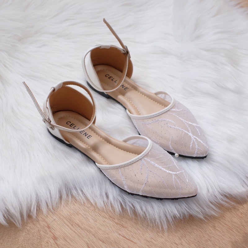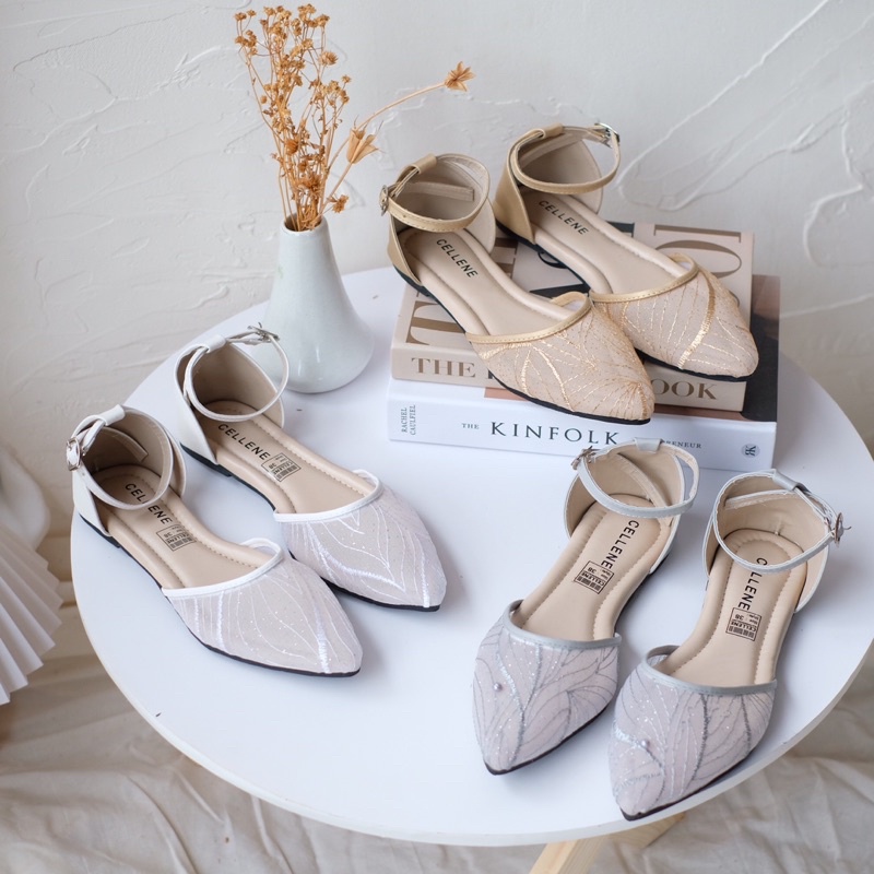 Cellene Flat Balerina Lace 3warna / Flat Brokat Tali
