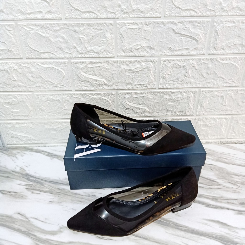 Sepatu ZR-187 Flat Shoes 2Cm Suede Hitam Formal