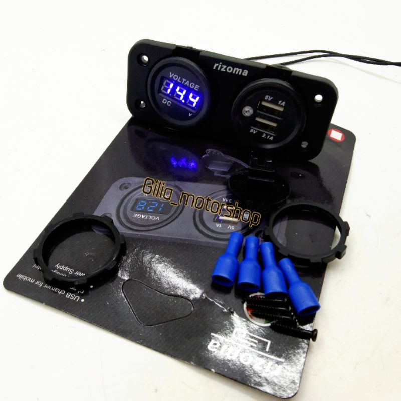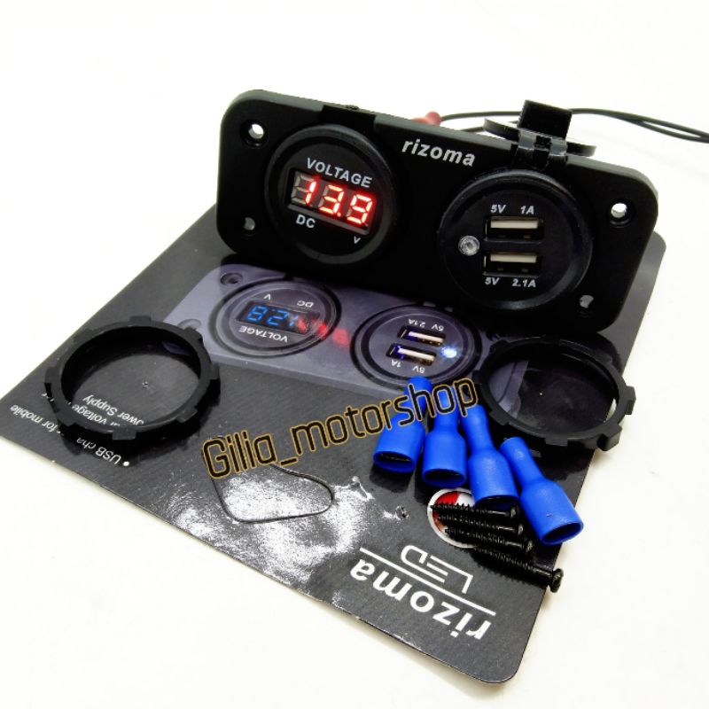 Voltmeter/charger Hp USB Rizoma LED Model tanam Universal Motor