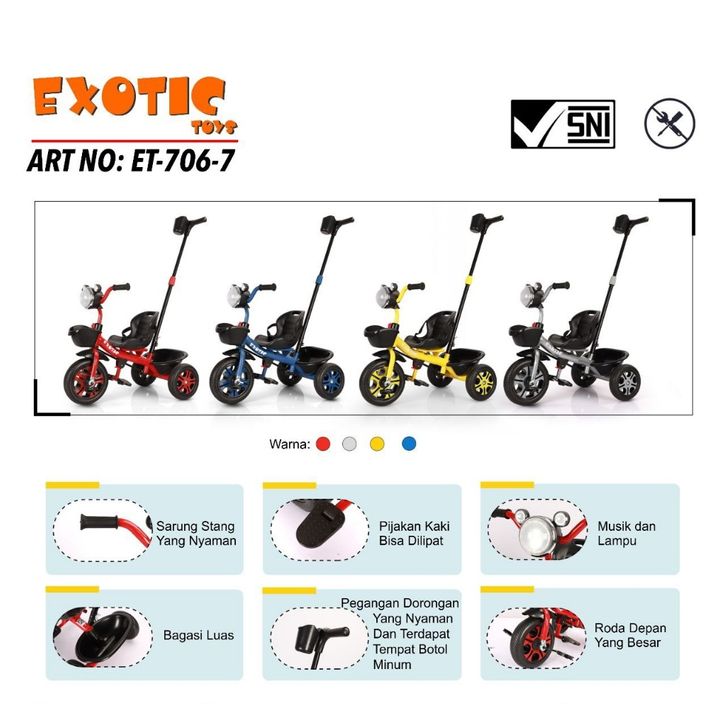 Sepeda Anak Roda Ta EXOTIC ET 76-7 Tricycle Musik Lampu Dorongan