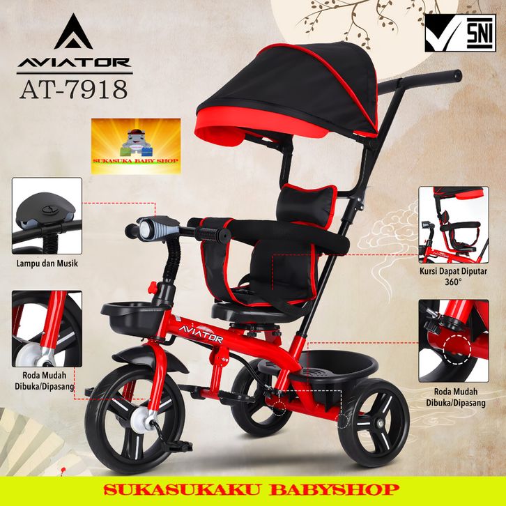 Sepeda Anak Roda 3 Ta Tricycle Aviator AT 791 Lampu Musik Kursi Hadap Depan Belakang