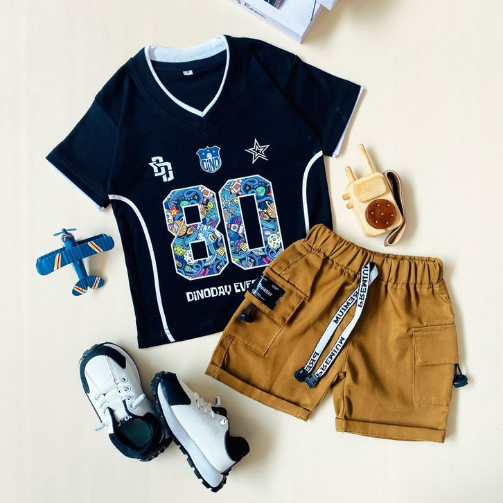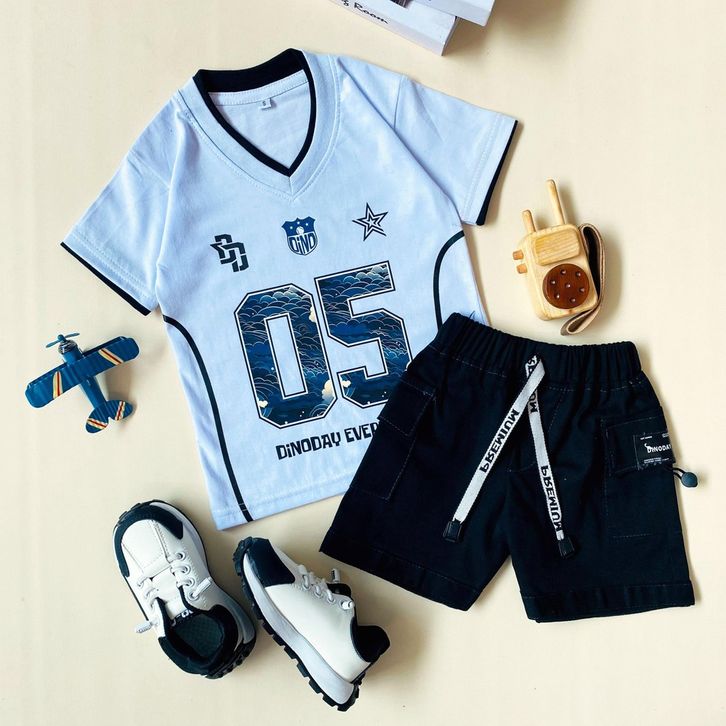 ESTISHOP X DINODAY Setelan Baju Anak Lak Lakii Kaos Football Celana Jeans Hotpants 1 - 9 Tahun