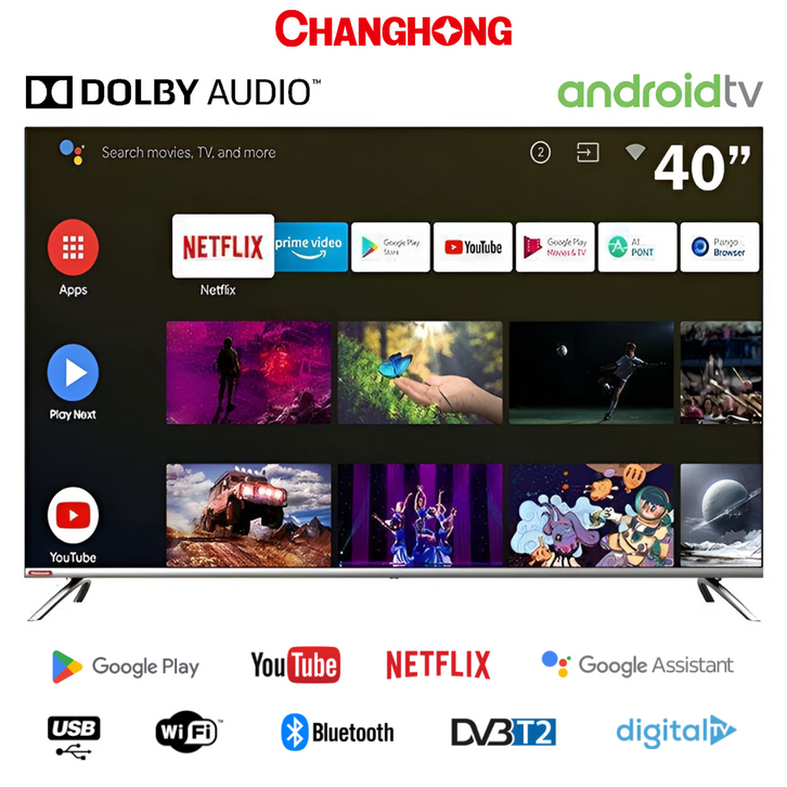 CHANGHONG ANDROID TV / SMART DIGITAL TV LED 40 INCH FULL HD L40H7 FRAMELESS ORIGINAL GARANSI RESMI