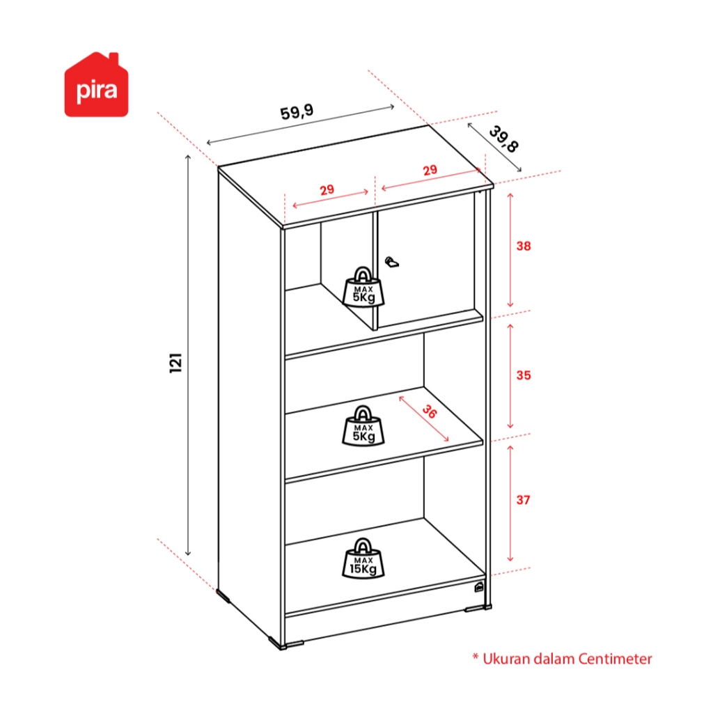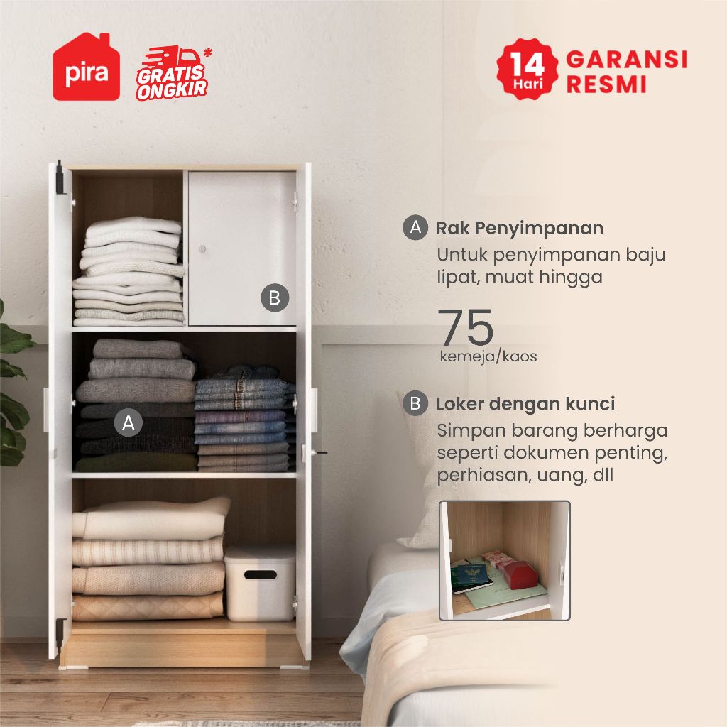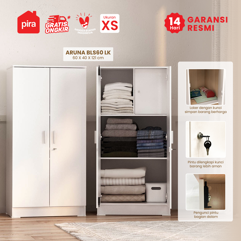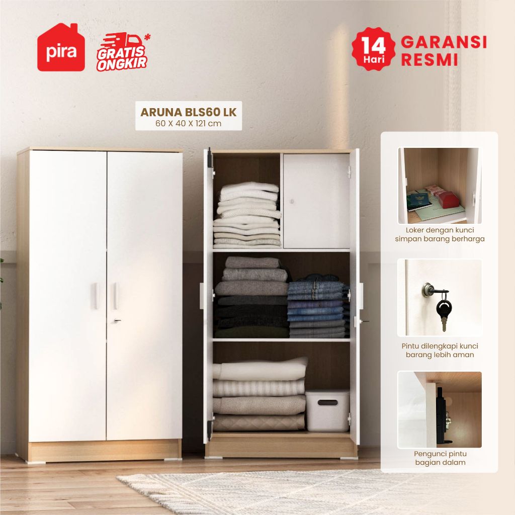 PIRA METROPOLIS OX - ARUNA BLS60 LK Lemari Pakaian Medium 2 Pintu Full Rak dengan Loker Penyimpanan