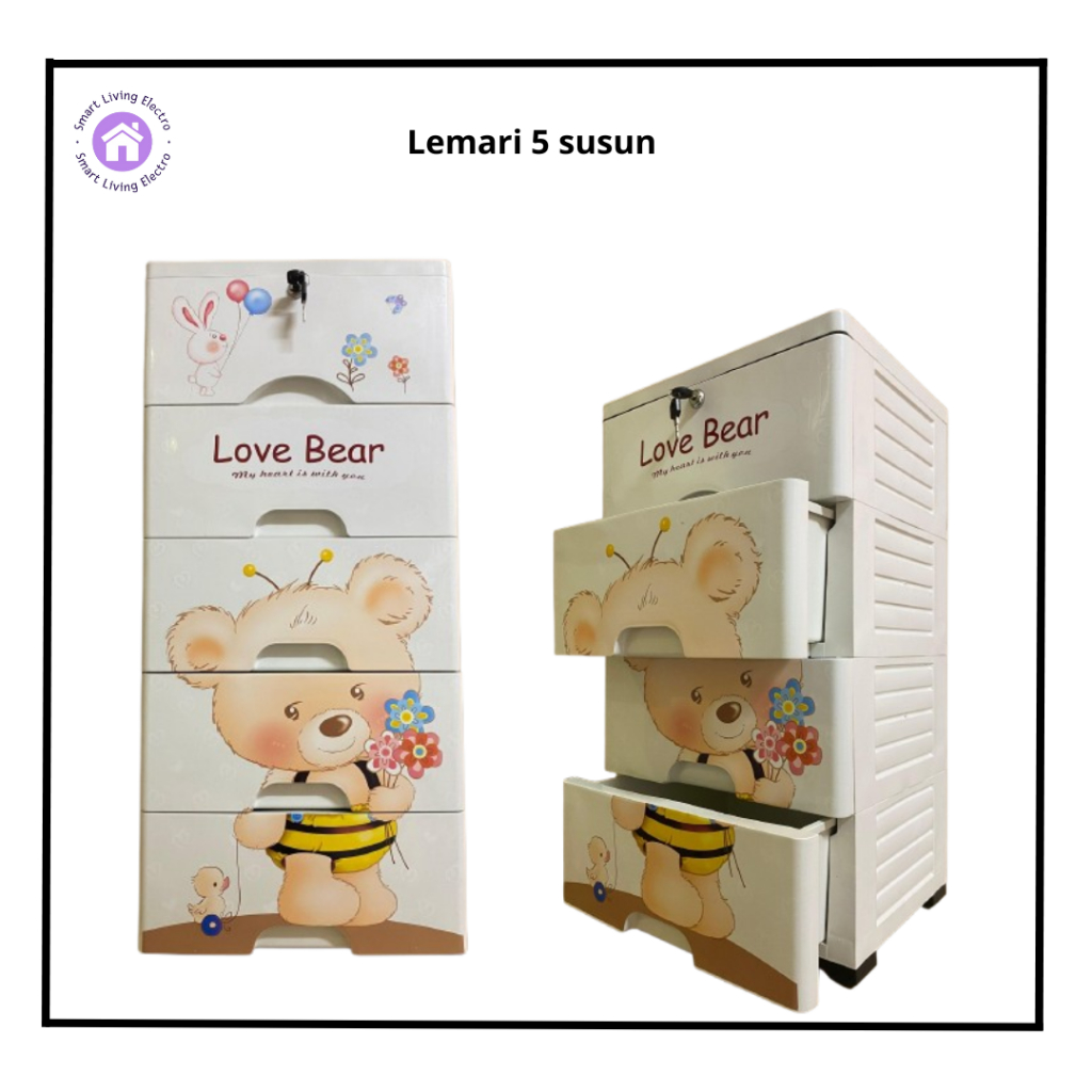 Lemari Pakaian Anak 4 Tingkat 5 Tingkat Lemari Plastik Karakter Penyimpanan Pakaian Baby
