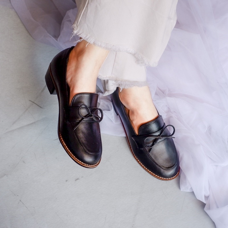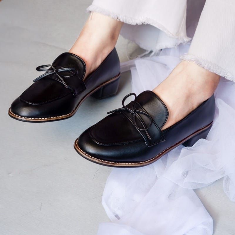 Yovvli Tivanka Flatshoes Sepatu Wanita Kerja kuliah kantor Hitam Kulit sintetis empuk anti lecet hak 3 cm