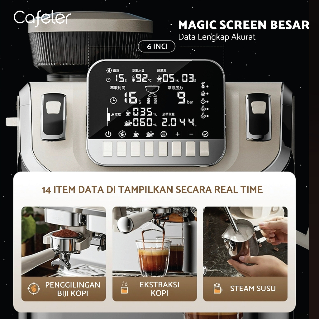 Cafeler Mesin Kopi Espresso 2 Heater Coffee Maker Smart Screen Kontrol