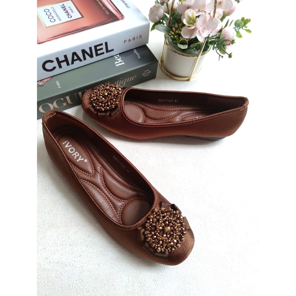 IVORY Sepatu Ukuran Besar Flatshoes Satin Size 41 42 43 44 B993-TA20