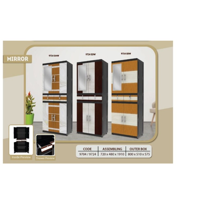 NAIBA LEMARI PLASTIK JUMBO BESAR PLUS LACI 9724 FULL RAK TEBAL dan KOKOH KACA KUNCI CERMIN