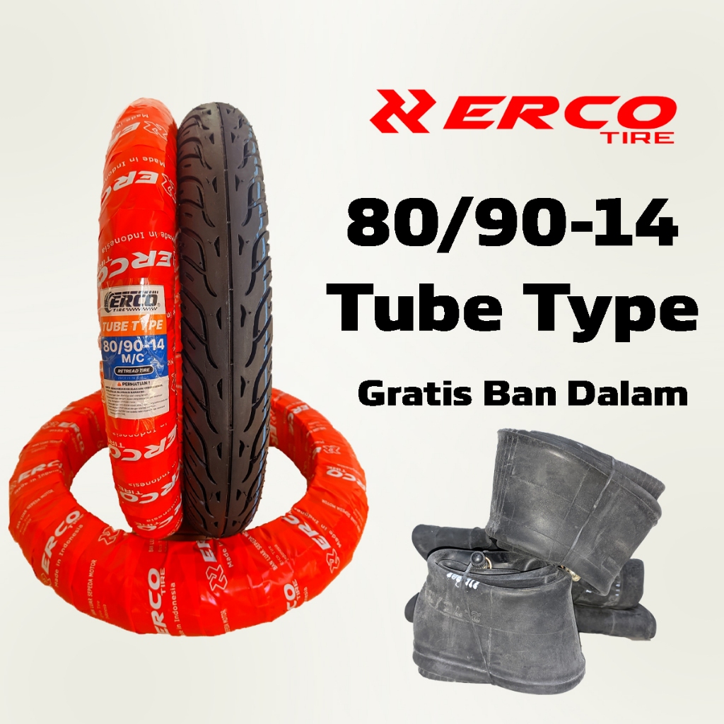 ERCO TIRE Ban Motor Matic Gratis Ban Dalam 80/90 90/90 Ring 14 Tube Type Vario, Beat, Mio, Mio Soul