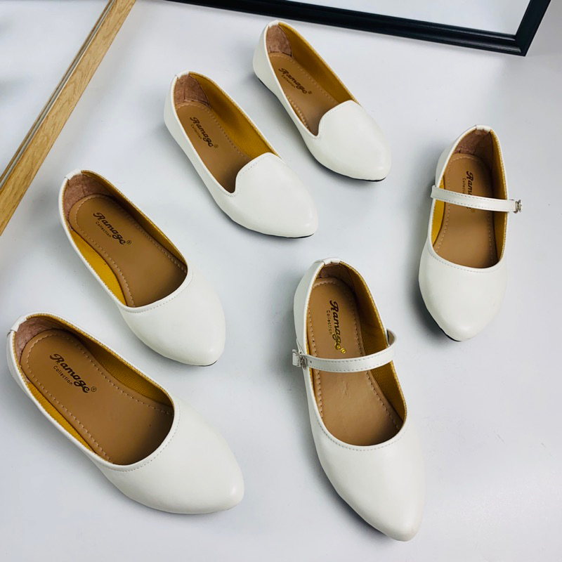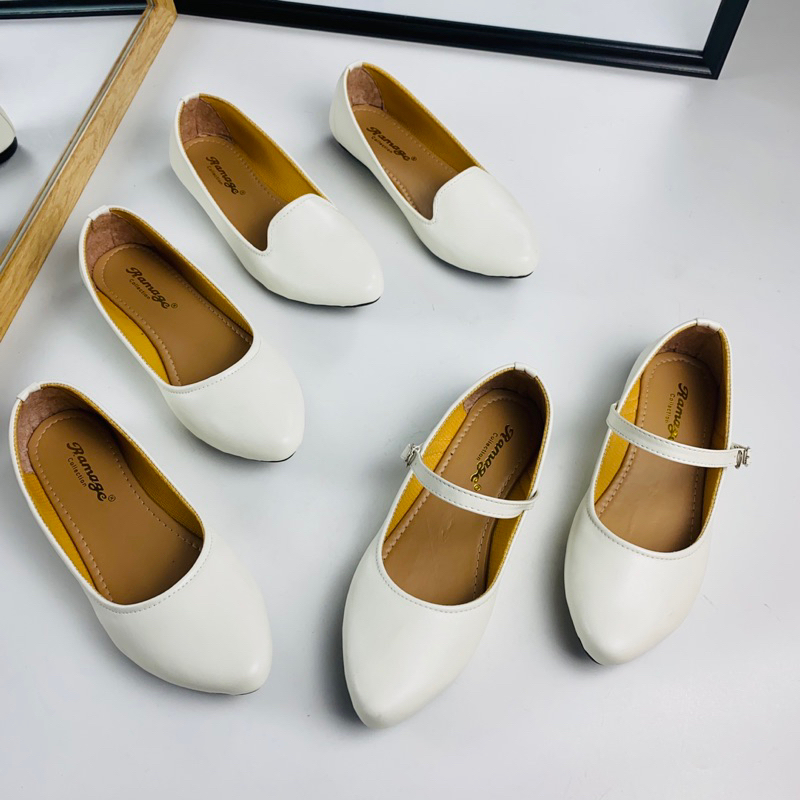 Sepatu Kerja Flat Shoes Wanita Ramage Putih