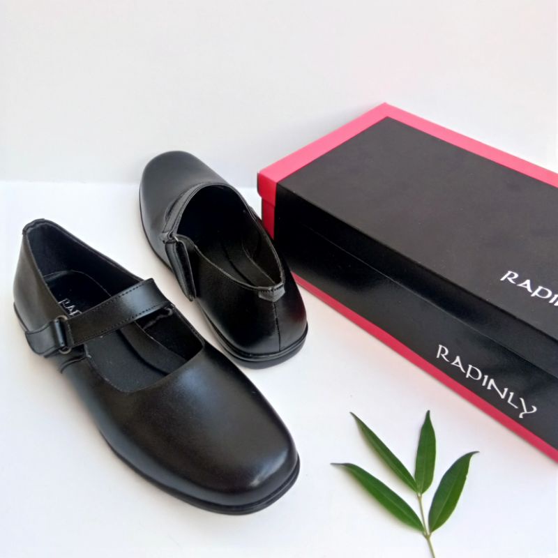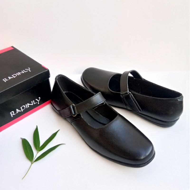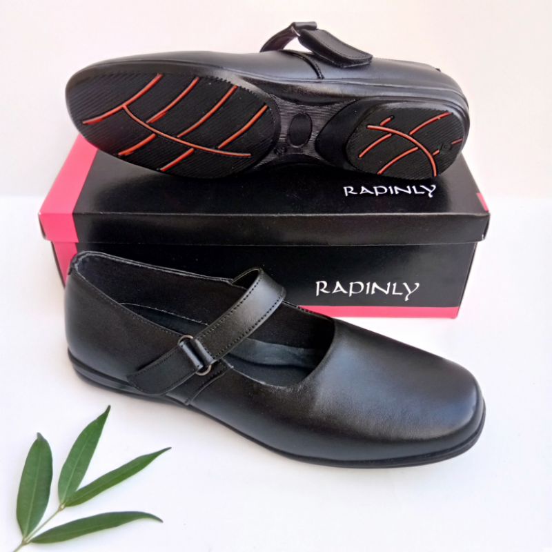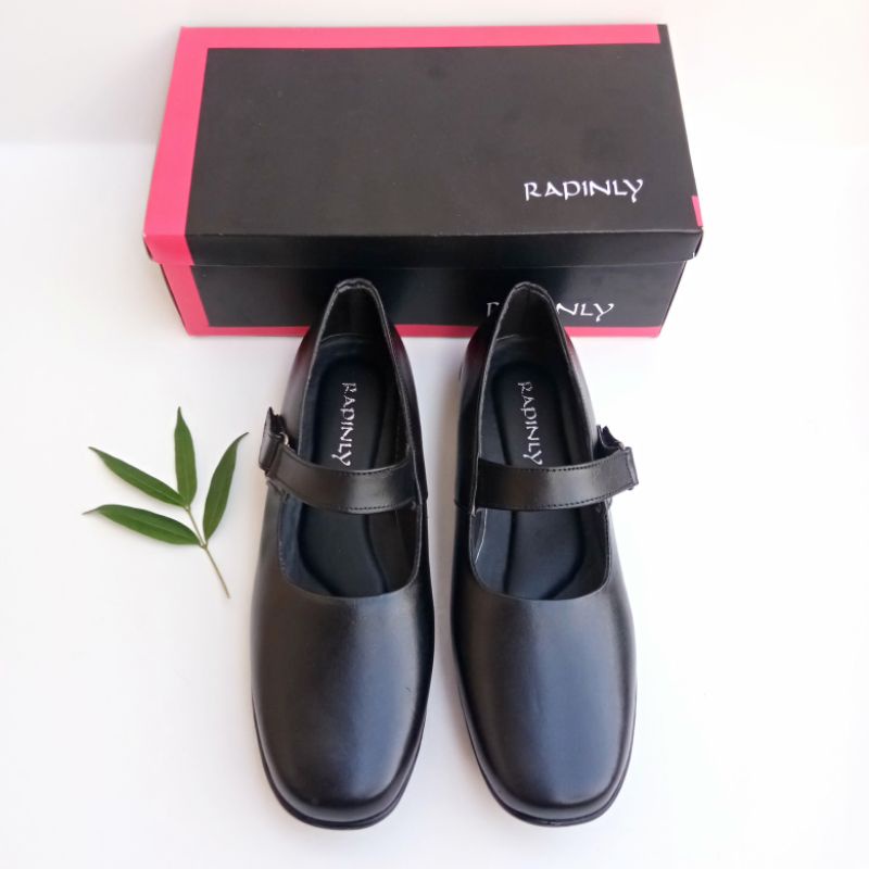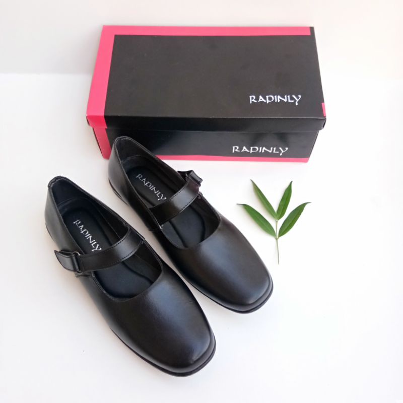 Sepatu Pantofel Wanita Kulit Flat Hitam Formal