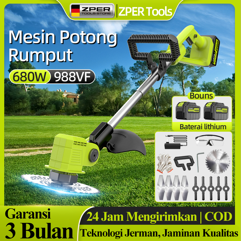 ZPER Mesin Potong Rumput Pemotong Rumput Listrik Pemangkas Rumput dengan Baterai Li-ion ZP003