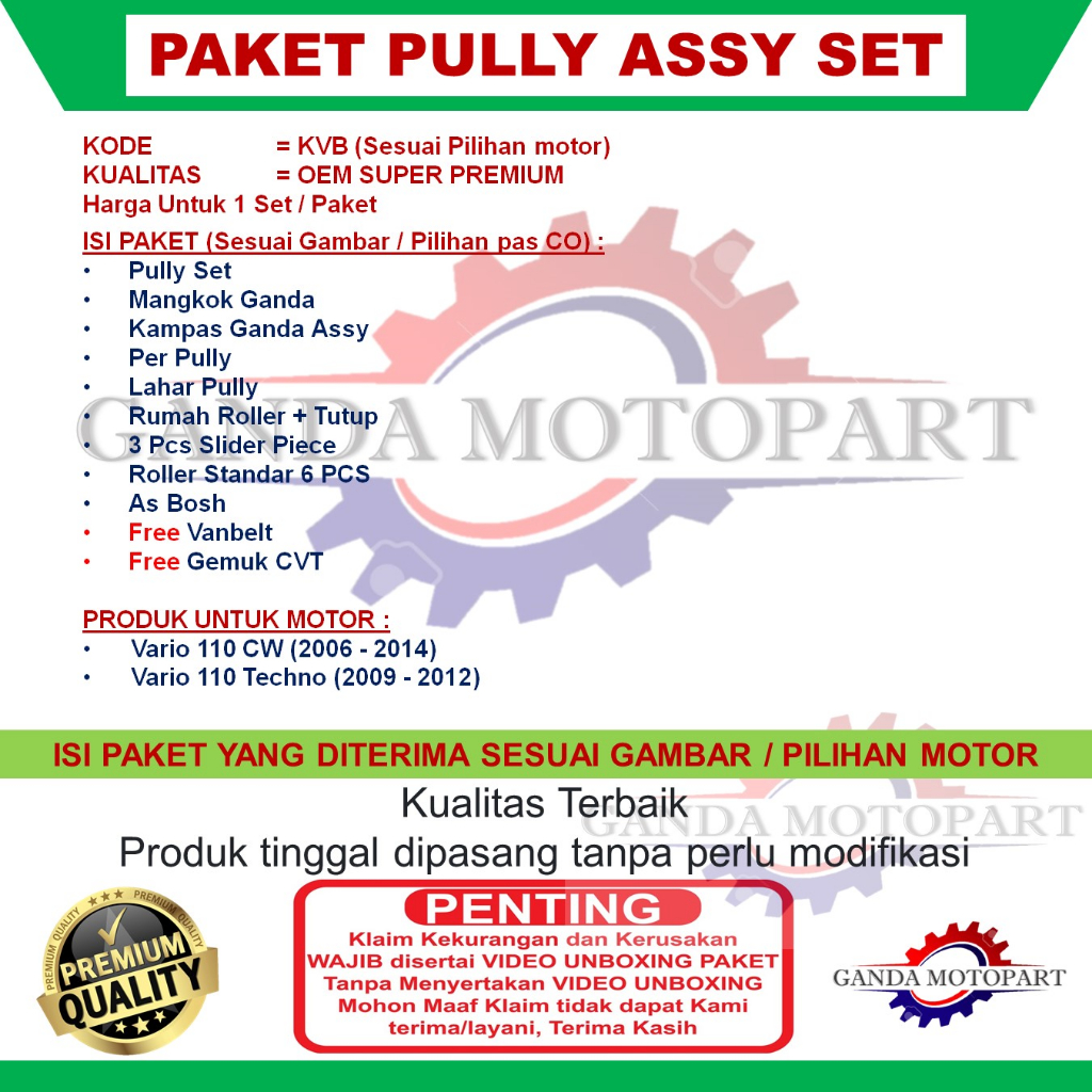 PAKET LENGKAP KIRIAN BELAKANG CVT PULLY A55Y VANBELT RUMAH ROLLER VARIO 110 KARBU CW TECHNO TEKNO KVB