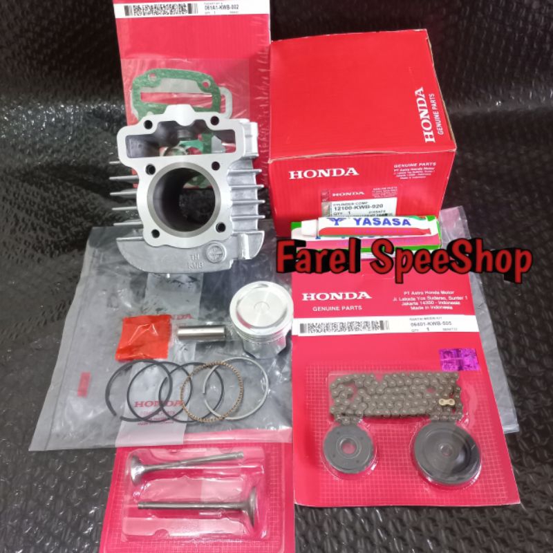 Blok Seher Assy Komplit + Klep Set + Rantai Keteng Honda Blade Lama Repsol 110 Revo Absolute 110 Revo Fit Karbu 110 KWB