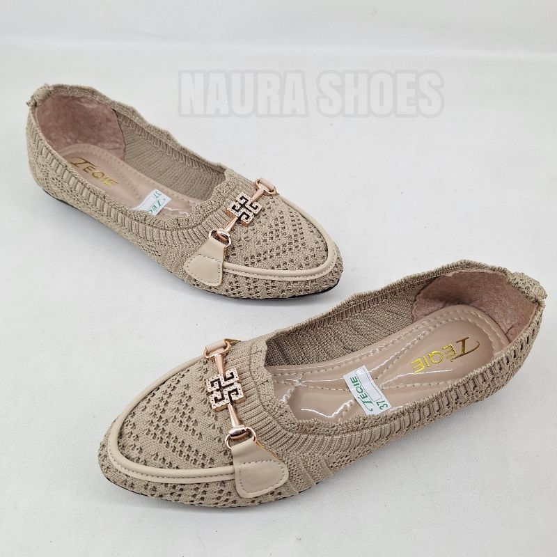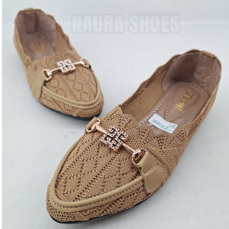 NAURA SHOES Sandal Dan Sepatu Wanita Dewasa ALISHA PMF67 Flatshoes Rajut Halus Pansus Kekinian Slip On Terbaru