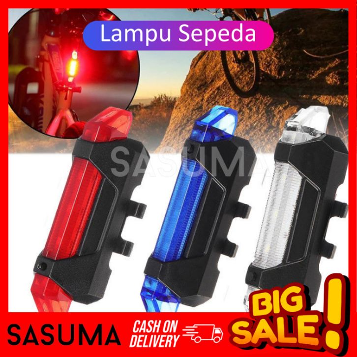 SASUMA Lampu Belakang Sepeda LED USB Rechargeae Anti Air Lampu Sepeda USB+Kabel cash
